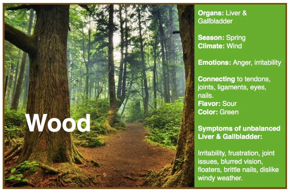 When the Wood element is out of balance we are not as flexible, unable to make decisions and avoid making plans. The ambition and challenge can come across as confrontation, frustration, anger and irritability, we often become judgmental, over controlling, stubborn and irrational.